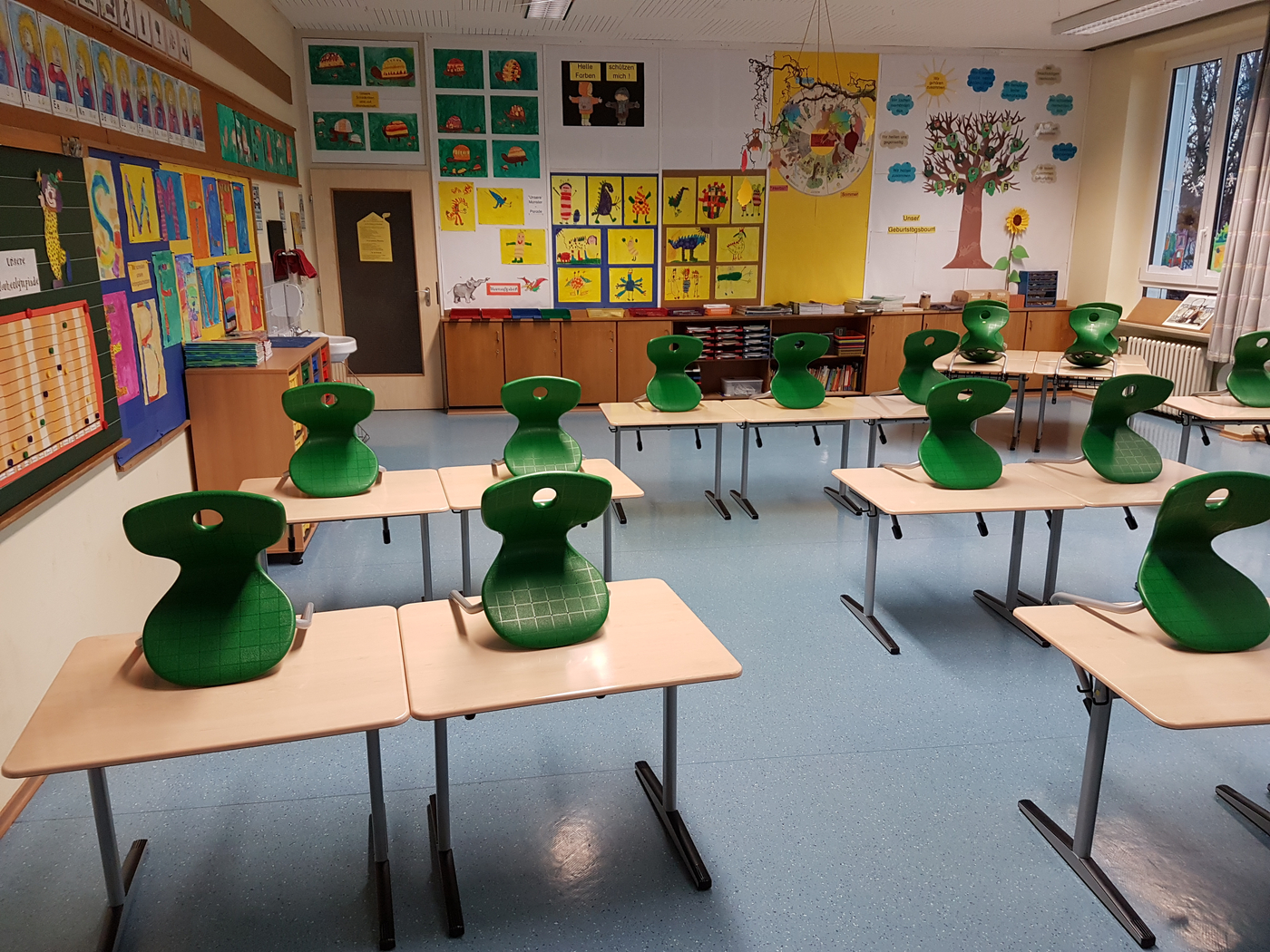 Nach einer Woche Probesitzen meldeten sich die Kinder zu Wort. Viele beschrieben die Stühle als schön grün, leicht und sehr bequem. „Durch das Loch in der Lehne kann man sich selbst die Hand geben“, bemerkte ein Schüler. Ein anderer meinte dazu: „Wegen dem Loch in der Stuhllehne muss ich jetzt einen warmen Pulli anziehen, sonst friert es mich.“ Hier bleibt zu hoffen, dass der Sommer bald kommt. Bei den neuen Einzeltischen waren sich jedoch alle einig. Sie wurden als schön glatt, hell und groß beschrieben. „Wir haben jetzt mehr Arbeitsplatz und müssen uns nicht mehr streiten, wem welche Tischhälfte gehört“, stellten einige mit Freude fest. „Ich kann mich von meinem Partner wegschieben, wenn er mich ärgert“, freute sich eine Schülerin.