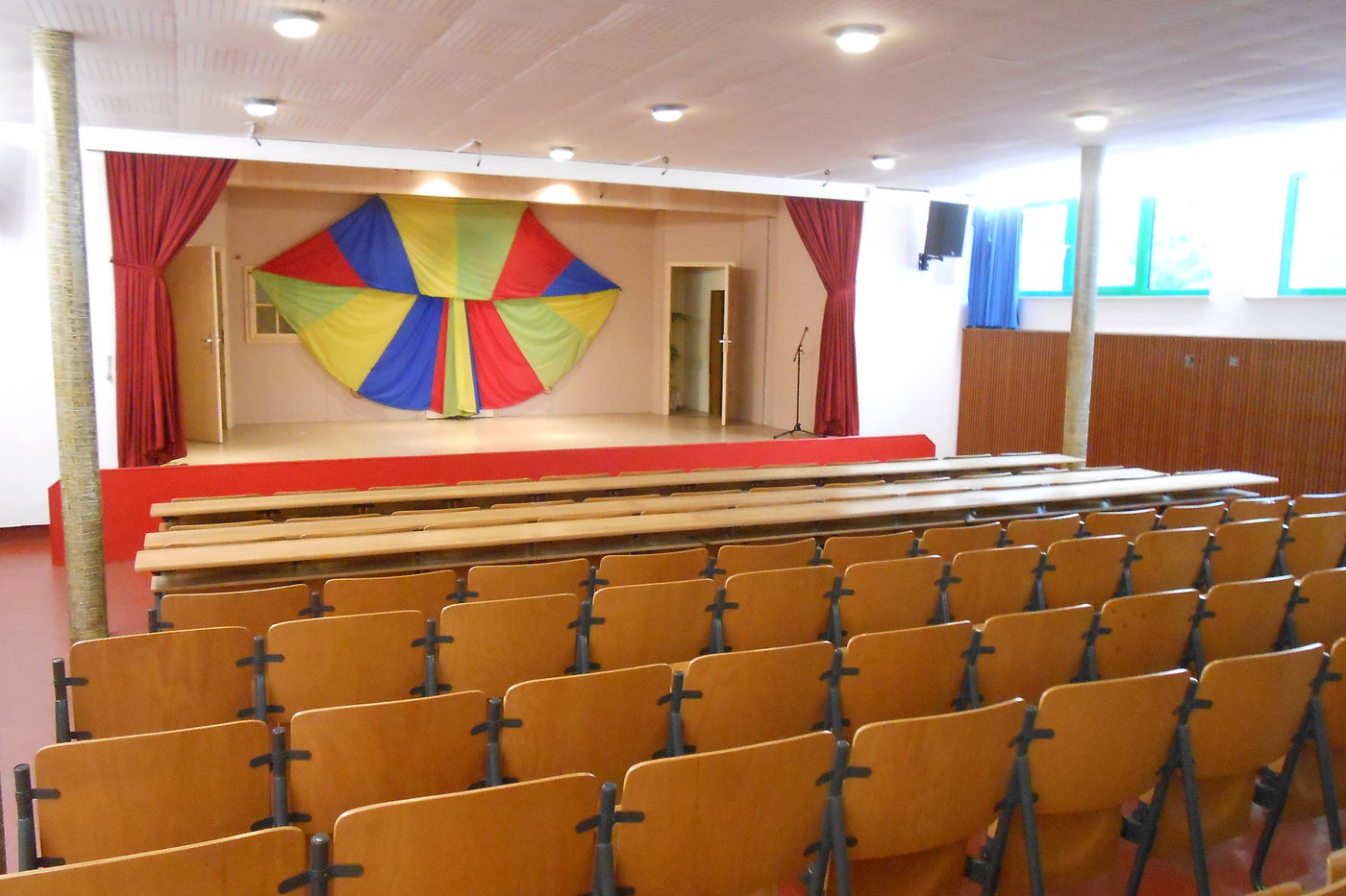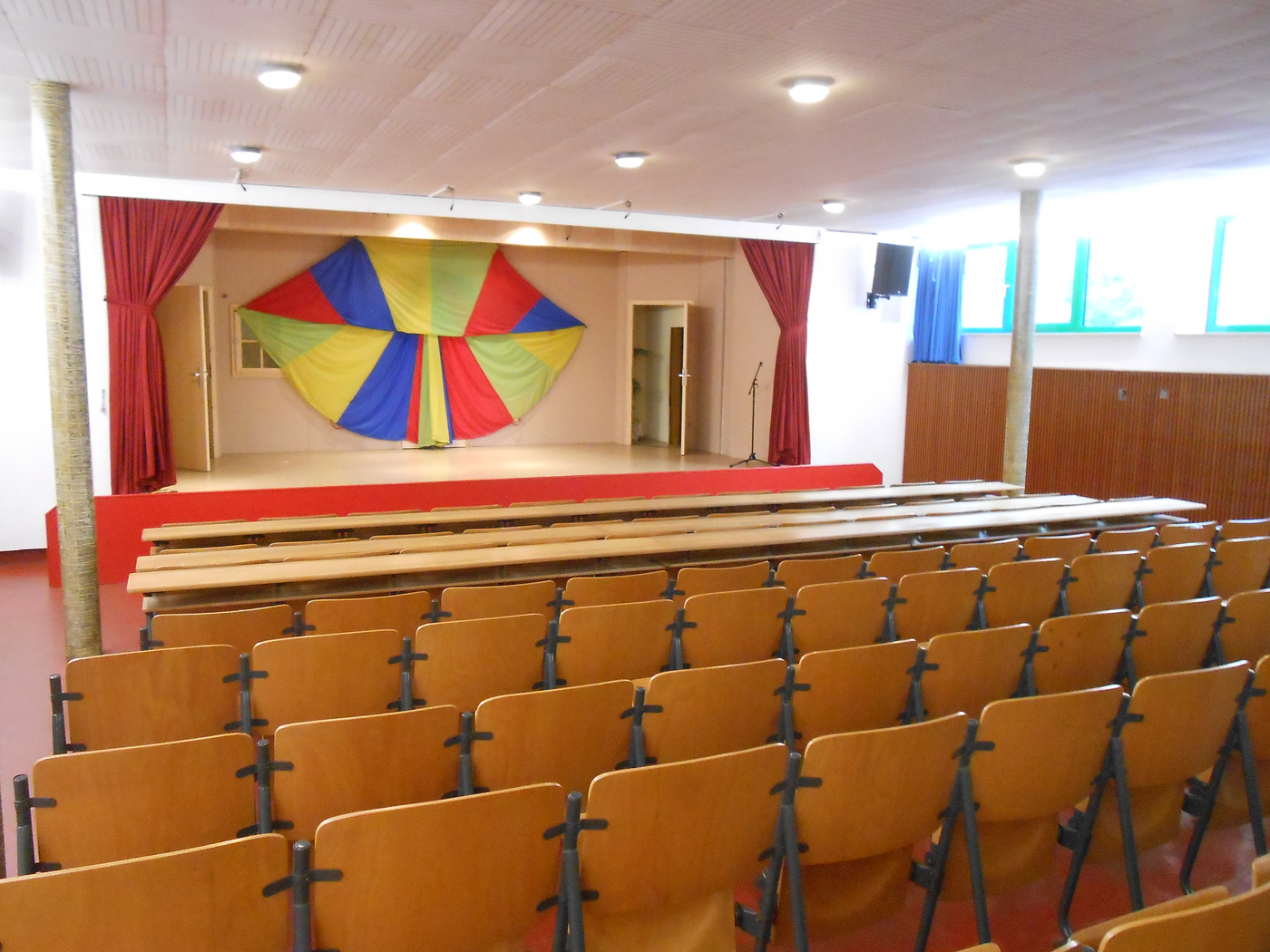 Im Schulhaus setzt sich die Weite vom Schulgelände fort. Große Klassenzimmer, Werk- und Textilarbeitsräume sowie ein Theaterraum mit 200 Plätzen und eine Turnhalle zeichnen unsere Schule aus.