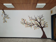 Schritt für Schritt entstand im Schuljahr 2022/2023 im Obergeschoss unseres Schulhauses ein neues Wandbild.