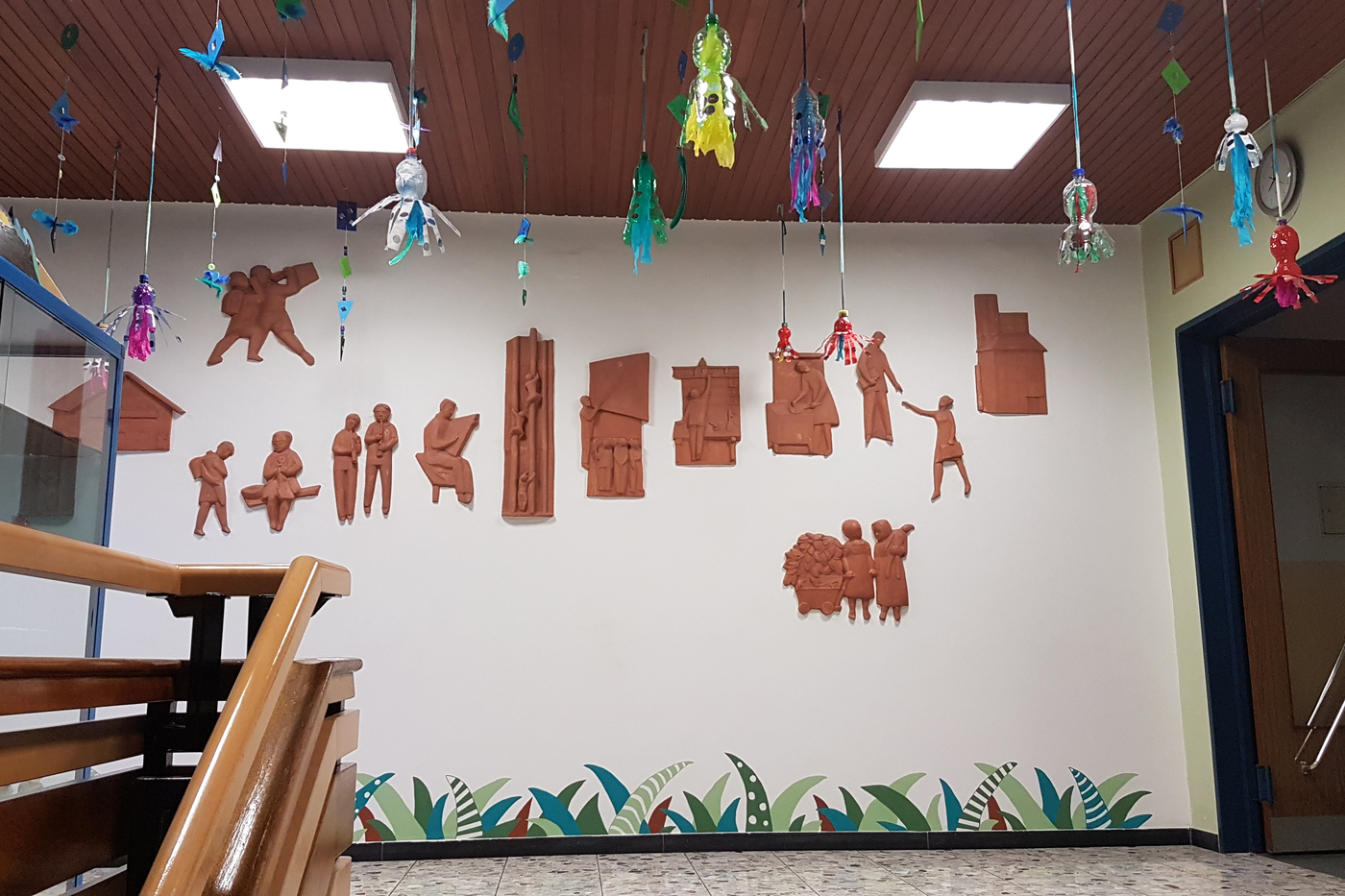Jedes Kind brachte sein Kunstwerk ein, so fügte sich alles zu einem großen Gemeinschaftswerk.
